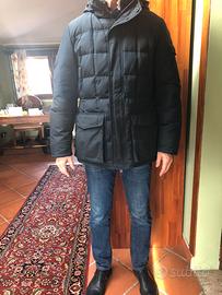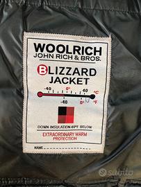 Giaccone Woolrich modello Blizzard (certificato a -40°), colore blu scuro e taglia L, in buone condizioni con due piccoli segni di usura sugli spigoli inferiori delle tasche esterne. Trapuntato, con coulisse elastica regolabile con cordini interni, pattina antivento di copertura della zip chiudibile con bottoni automatici, zip a doppio cursore, ha due tasconi esterni in basso con scaldamani, un taschino esterno con zip sulla manica sinistra, un'ampia tasca interna con zip. Sono inoltre presenti un cappuccio rimovibile ed uno scaldacollo anch'esso rimovibile. La parte terminale delle maniche è rifinita con polsini elastici antivento. Il giaccone è leggero, impermeabile, molto caldo ed estremamente versatile (comodissimo anche quando si guida). La misura delle spalle è di 48cm, la lunghezza totale è di 80cm. Io (in foto) sono alto 185cm e peso 80Kg. Solo consegna a mano a Milano. Il prezzo non è trattabile.