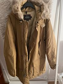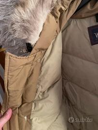Piumino Woolrich originale Taglia S Unisex Colore miele Polsini in lana Lunghezza al ginocchio