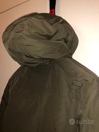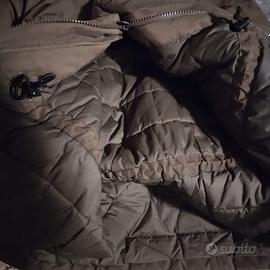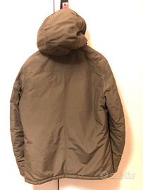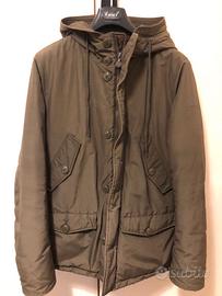 Magnifico parka Woolrich, linea ecologica Penn-rich, con cappuccio, zip e bottoni. Imbottitura termica in poliestere Thermore, verde oliva. Misura M adatta a taglia 44 fino a 48, con coulisse interna. Quattro tasconi, due orizzontali e due trasversali altezza petto, tutti con bottone.