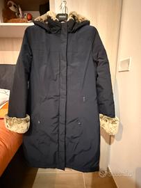 Parka woorlich originale, con maniche, interni cappuccio e strisce interne in pelliccia di coniglio. Tg M. Nin e il classico parka, ma piu lungo ed avvitato. Colore blu scuro. Indossato pochisisme volte e poi riposto in armadio e ami piu messo. Pagato circa 600/700€