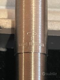 Penna Modello 45 Flighter GT Rollerball. Epoca anni 70/80. Corpo e Cappuccio: Sono in acciaio inossidabile con una finitura spazzolata (detta "brushed"), che serve a nascondere meglio i piccoli graffi e le impronte digitali. Clip: È anch'essa in metallo (spesso acciaio), con la classica forma a freccia . Questa è la versione GT Deluxe con la freccia placcata oro Ottimo stato di conservazione, deve essere cambiata la ricarica .