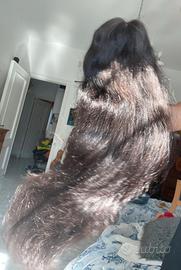 Parrucca nera naturale lunga 30 inch munita di lace front con capelli 100% veri (si può fare piastra tutto) in dotazione anche la sacchetta in seta