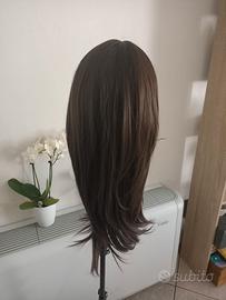 parrucca castana lunga, nuova.