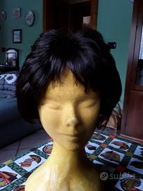 Parrucca capelli sintetici castano scuro con porta parrucca