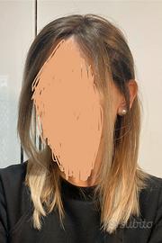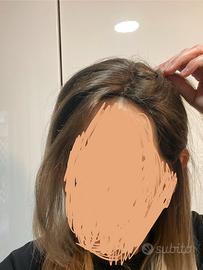 Parrucca di capelli veri europei. Marca farcaphair. Colore castano cenere alla base e balayage biondo freddo. Il top é di seta che riproduce perfettamente la cute. Forse la parrucca più realistica che ho visto. La base è cucitura libera il che permette di muovere i capelli in tutte le direzioni. Per le mie esigenze non é adatta perché avendo i capelli sotto faccio fatica a fissarla con il biadesivo. Mi spiace venderla ma non posso riportarla al negozio dal momento che l’abbiamo fatta su misura. Capelli morbidi e leggeri. É possibile provarla senza impegno.