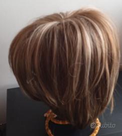 Parrucca donna caschetto castano chiaro con meches bionde folta e praticamente nuova