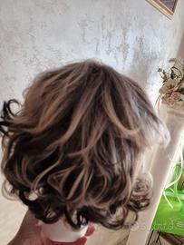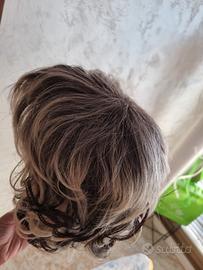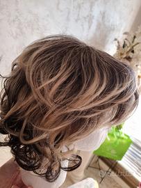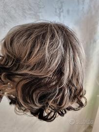 Vendo parrucca donna nuova con meches color castano scuro e biondo, realizzata in morbide fibre sintetiche, è soffice e traspirante. Ha bel taglio ma il colore è molto diverso dal mio. È taglia unica, ma con laccetti interni con cui si può regolare.