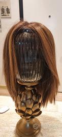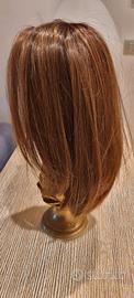 parrucca nuova..mai usata...colore castano con alcune schiariture in fibra sintetica ma lavabile e con possibilità di asciugatura fino a 130°.