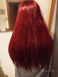 Bellissima parrucca color mogano, capelli lunghi, lavabili,con frangetta scalata, la parrucca è bellissima,nuova mai indossata,vero affare....