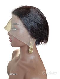 parrucca naturale liscia corte con il frontale 13x1 di fianco bellissima per l estate e facile a mettere. lunghezza 8 non mai usato.