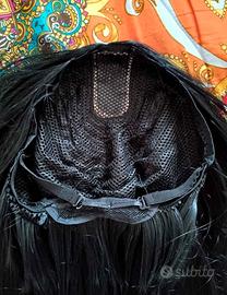 Parrucca nera lunga sintetica, mai usata, ideale per cosplay di Morticia Addams, Mercoledì e personaggi vari, per Carnevale, Halloween ecc.