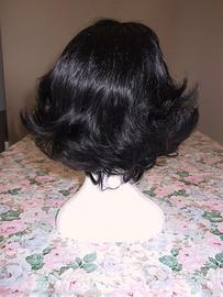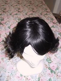 Bellissima parrucca di qualità con capelli neri veri (non sintetici), taglio mosso e giovanile.