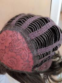 Parrucca capelli quasi veri morbidi naturali castano chiaro retina regolabile