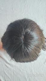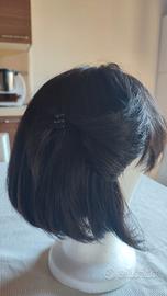 Informazioni sulla parrucca Parrucca sintetica di ottima qualità. Non so nota la differenza con un capello vero, fitta capello spesso color castano con riflessi. Si può accorciare a piacere come in foto o aggiungere un cerchietto, una fascia ecc e sei sempre perfetta. La costruzione “capless” la rende naturale e confortevole, e le tecniche professionali di produzione garantiscono un aspetto curato. Come indossarla - Fissa prima i tuoi capelli. - Tieni la parrucca dai lati e posizionala all’attaccatura dei tuoi capelli. - Tirala all’indietro sulla testa. - Regola i lati e le chiusure in velcro per adattarla alla tua misura. Come prendersene cura - Spazzola bene dopo ogni utilizzo. - Lavala quando necessario rigirata lasciando i capelli all'interno e immergendola in acqua fredda o tiepida con un detergente delicato. (O Shampoo per capelli sintetici) - Risciacqua con acqua fredda, tampona delicatamente e lasciala asciugare all’aria. - Evita tinture, decolorazioni, ferri caldi, phon o fonti di calore. Suggerimenti di styling Si può modellare facilmente con una spazzola e un po’ di lozione fissativa. Puoi spazzolare, cotonare leggermente e poi lisciare lo strato superficiale.