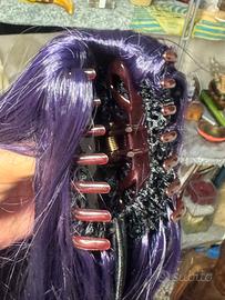 parrucca lunga e liscia di colore viola, spesso utilizzata per costumi e #cosplay .