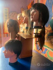5 testine con parrucche mai usate. Non spedisco Prezzo ribassato per trasferimento. Valuto anche offerte parziali.