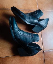 Particolare camperos texano con apertura laterale e trama. Tacco davvero molto comodo. Numero 38. Punta leggermente usurata, come da foto.