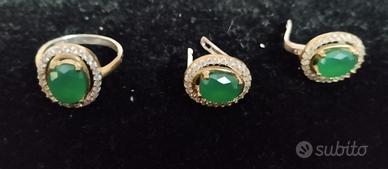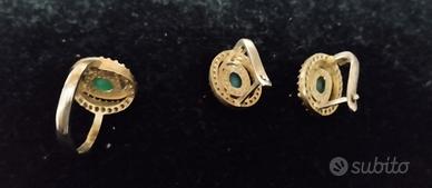 Splendida Paruru in Argento 925 con bagno in Oro giallo, Anello + Orecchini, montano Smeraldi a taglio brillante bellissimi, circondati da Zaffiri bianchi brillanti, una rarità, mai indossati, unico, vedi foto