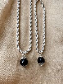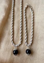 Parure di collana e bracciale argentati in acciaio con su coccu, fatto a mano. Su coccu è un amuleto tipico della Sardegna, simbolo della protezione e della buona fortuna. Da custodire sempre con te. Ottima idea regalo! Nuovo. Cod. 1115.23