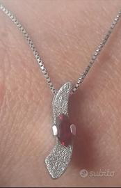 Bellissimo set gioielli, composto da collana e orecchini impreziositi con raffinati rubini rossi. Indossati raramente, ottimissime condizioni, solamente una farfallina è stata sostituita (sempre in argento),non ricordo se è placcato oro o platino.