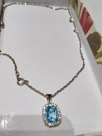 Necklace argento con ciondolo pietra azzurra quadrata circondata da punti luce.