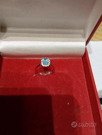 Anello argento con pietra azzurra quadrata circondata da punti luce.