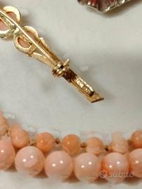 Per chi li acquista, diventerà una collana di valore, orecchini a clip con corallo su metallo anallergico argentone ed una bellissima spilla in argento 800 bagnato in oro con corallo