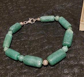 Parure bracciale e orecchini in pietre dure color giada e argento 925. In vendita con formula visto e piaciuto.