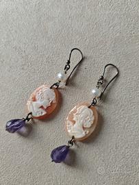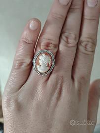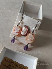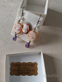 parure con cammeo e orecchini a monachella con pietre naturali Cammeo Factory De Paola, Napoli misura anello 16