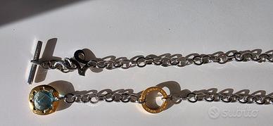 Elegante parure composta da collana e bracciale coordinati, firmati MOBY, ispirata al segno zodiacale del Capricorno. Un set raffinato e originale, perfetto per aggiungere un tocco personale e simbolico al tuo stile. Dettagli del bracciale: Catena in metallo argentato con maglie rotonde Chiusura a T-bar con anello dorato inciso “LODY MOODY MOODY LODY” Charm pendente a forma di simbolo stilizzato (richiamo al segno Capricorno) Gemma centrale blu sfaccettata, incastonata in castone dorato con 6 griffe a corona Dettagli della collana: Coordinata al bracciale, con catena in metallo argentato Chiusura a T-bar con anello dorato inciso “TOD’S TOD’S TOD’S” Charm pendente a forma di lettera “J” stilizzata Gemma blu sfaccettata in castone dorato, identica a quella del bracciale Caratteristiche principali: Marca: MOBY Tema: Segno zodiacale Capricorno Colori: Argento, oro, blu zaffiro Materiali: Metallo argentato e dorato, pietra sintetica Condizioni: Ottime, indossati molto poco Design moderno e simbolico, con dettagli curati e finiture di qualità. Ideale per chi ama l’astrologia, i gioielli personalizzati o semplicemente cerca un accessorio unico e versatile. Ritiro in zona tiburtina e piu precisamente in via tancredi cartella altrimenti spedizione con il servizio che il sito stesso mette a disposizione degli utenti. Euro 65
