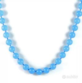Stupenda parure collana, bracciale e orecchini pendenti (lunghi 4 cm) con perle da 8 mm (collana) e 10 mm (il bracciale e gli orecchini) di autentica acquamarina naturale. La parure è accompagnata da CERTIFICATO di GARANZIA ed è NUOVA.