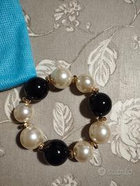 Set bracciale e collana corta da donna in coordinato, con perle bianche e nere. mai indossato, ottimo su abiti eleganti per cerimonie o eventi importanti. Prezzo trattabile. contatto anche whatsapp.