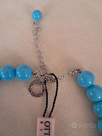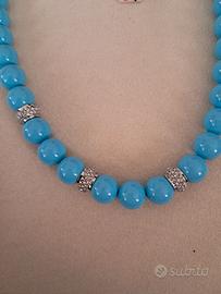 Compketo collana e bracviale in pasta di turchese con distanzialinin metallo e zirconia cubica NUOVI.