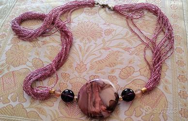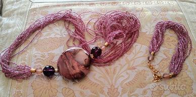 Vendo parure in perle di vetro di Murano sui toni del rosa e marrone, portabilissima sia d'inverno che d'estate.