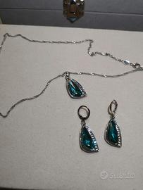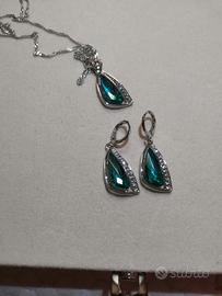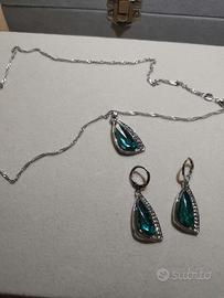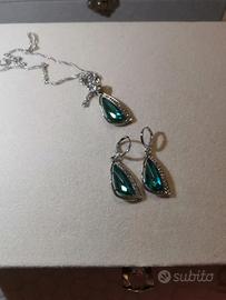 Collana e orecchini in acciaio inossidabile con pietra verde acqua, mai usato