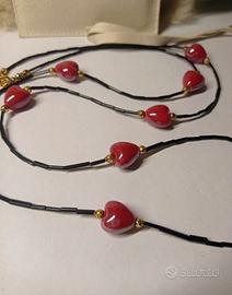 Set Collana + Orecchini da Donna con Perle oro e Cuore 💙 LuaCreazioni 💙. Bellissima Parure ideata e realizzata da LuaCreazioni. La collana è lunga 90 cm, gli orecchini misurano 4,5 cm. Ho utilizzato bastoncini neri , cuori di ceramica smaltata, perline di vetro color oro e altri accessori per bigiotteria in acciaio dorato. Ogni mia creazione è pensata per essere un regalo per gli altri o per sé stessi, ecco perché i prodotti 💙LuaCreazioni 💙sono confezionati con cura