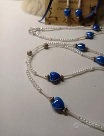 Set Collana + Orecchini da Donna con Perle e Cuore 💙 LuaCreazioni 💙. Bellissima Parure ideata e realizzata da LuaCreazioni. La collana è lunga 90 cm, gli orecchini misurano 6 cm. Ho utilizzato perle sintetiche ma molto luminose, cuori di ceramica smaltata, bastoncini di madreperla, piccolissime perline di vetro e altri accessori per bigiotteria in acciaio. Ogni mia creazione è pensata per essere un regalo per gli altri o per sé stessi, ecco perché i prodotti 💙LuaCreazion