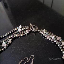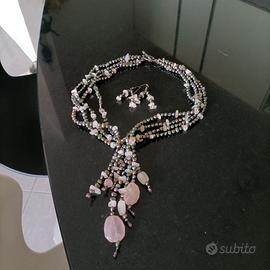 PARURE COLLANA E ORECCHINI IN QUARZO ROSA E PERLE