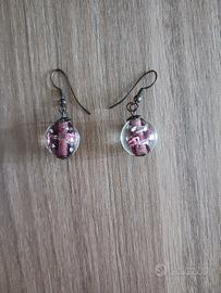 collana bordeaux e rosa con perle fatta a mano con fili intrecciati e orecchini fatti a mano bordeaux e rosa