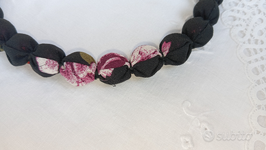 Collana In Stoffa Nera E Perle Rosa.