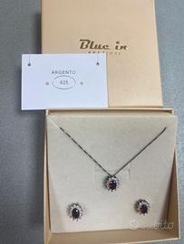 Elegante parure composta da collana e orecchini. - Realizzata in Argento 925. - Pietra centrale rossa con contorno di zirconi bianchi.