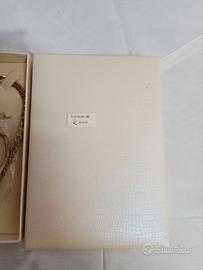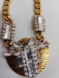 Gioiello stile Maia ,in ottone, metallo e cristalli Swarovski, anallergico e senza nichel, formato da collana con catenina spessa da cm 38 a cm 45 e medaglia, bracciale elasticizzato con medaglia e orecchini il tutto mai indossato con scatola originale unica e certificato. Marca SC Jewels.