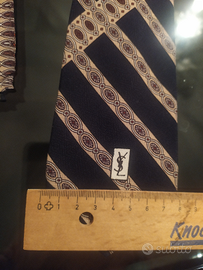 Parure cravatta e pochette originale Ives Saint Laurent. Usata solo una volta. Fondo nero con fantasia oro chiaro Scatola originale