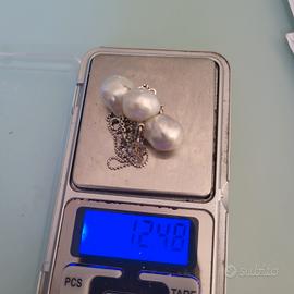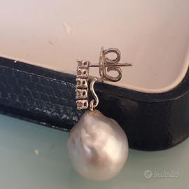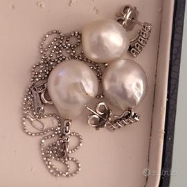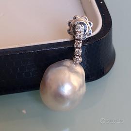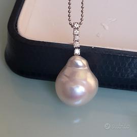 Vendo set completo e non divisibile composto da orecchini , boccole in oro 18 carati con perle Australia ct 27, diamanti naturali taglio brillante ct 0.25 colore H/G. Collana in oro 18 Kt, con ciondolo perla Australia ct 15, diamanti naturali ct 0.13 H/G. Eleganti , preziosi, ma al tempo stesso discreti e non appariscenti. Gli orecchini hanno una montatura che permette di togliere la perla e attaccare facilmente un altro ciondolo, o essere indossati solo con i brillanti. FAVOLOSI, da sogno.
