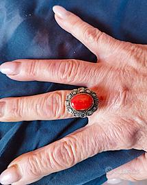 Parure di Corallo e Oro formata da: Collana 52 cm. (corallo centrale 2 cm di diametro) Peso 66 gr. - Bracciale 7,5 cm. Peso 9 gr. - Anello in oro, cabochon di corallo 1,5 x 1 cm. corona di brillantini Peso 7 gr. - Praticamente nuovo. Disponibilità a un controllo sulla qualità e autenticità. Non spedisco. Solo su Roma