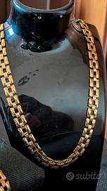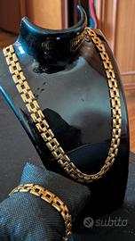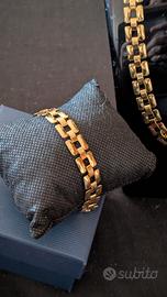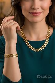Elegante parure di gioielli in acciaio placcato oro ispirata allo stile di Dior, composta da collana e bracciale. Anallergica. Compresa elegante scatola regalo