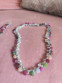Realizzato a mano con filato gioiello, pietre dure e cristalli. Lunghezza collina: 27cm ( chiusa) Lunghezza bracciale: 19cm
