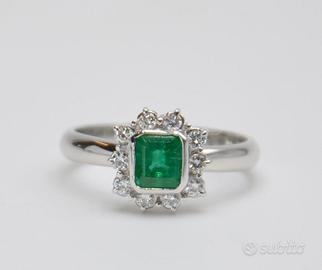 Questo anello è un capolavoro di eleganza, realizzato in oro bianco 18 carati. Al centro, risplende uno smeraldo da 1 carato con un taglio a carrè, dal colore verde intenso. A circondarlo, un pavé di diamanti naturali taglio brillante per un totale di 0,70 carati. I diamanti, di colore G e purezza VS1, creano un meraviglioso contrasto e aggiungono uno scintillio ineguagliabile.