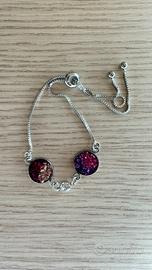 Parure composta da collana-bracciale-anello realizzata a mano in acciaio inox con resina, fiori veri essiccate e pietrine colorate. Base argento!