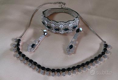 bellissima parure di gioielli indiani, composta da collier, bracciale & orecchini, pietre non preziose